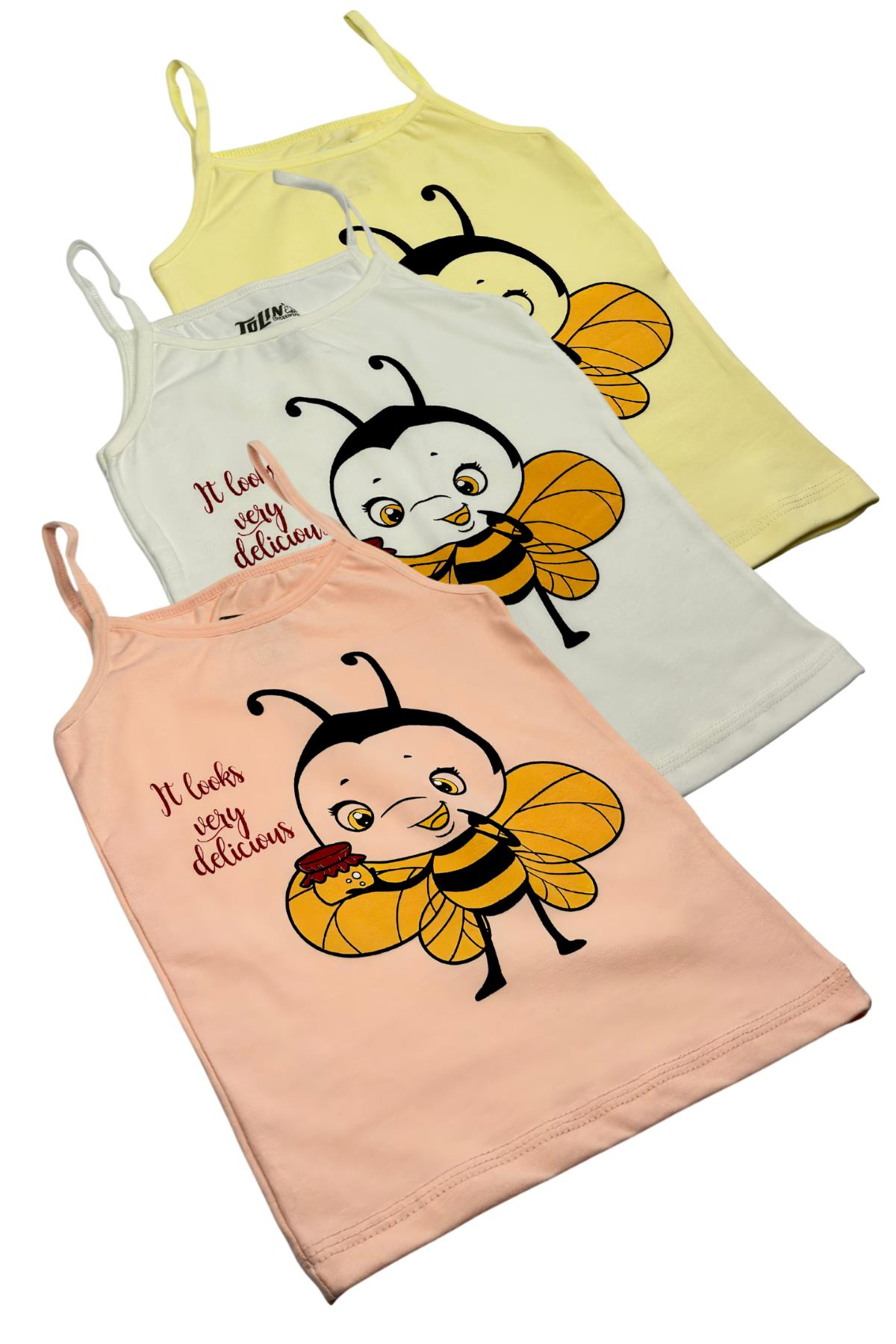 Kız Çocuk 3 lü Paket İnce Askılı Pamuklu Likralı Baskılı Atlet 1425
